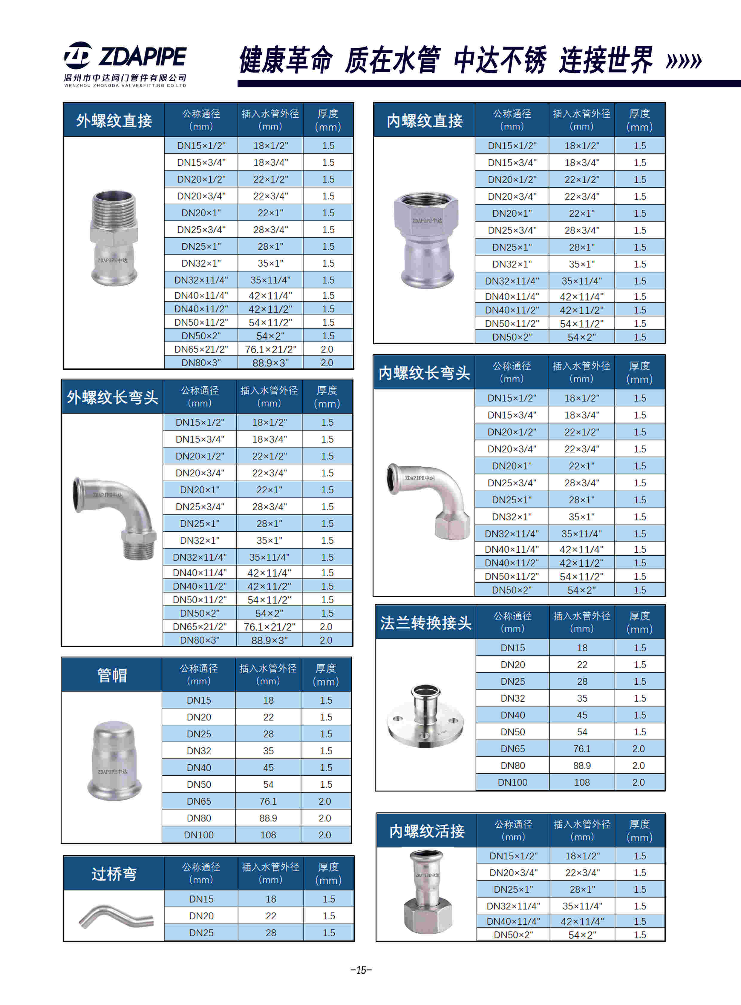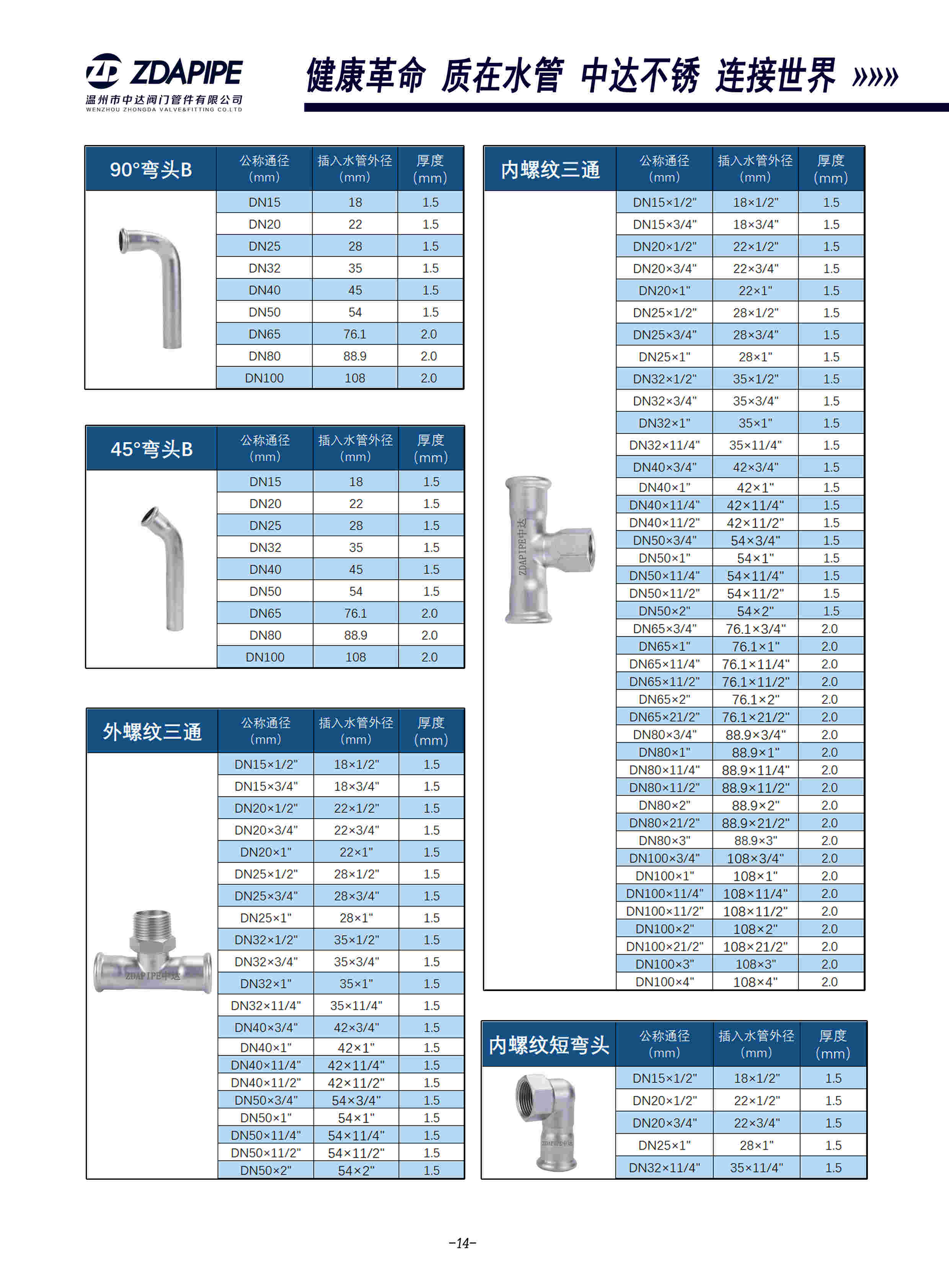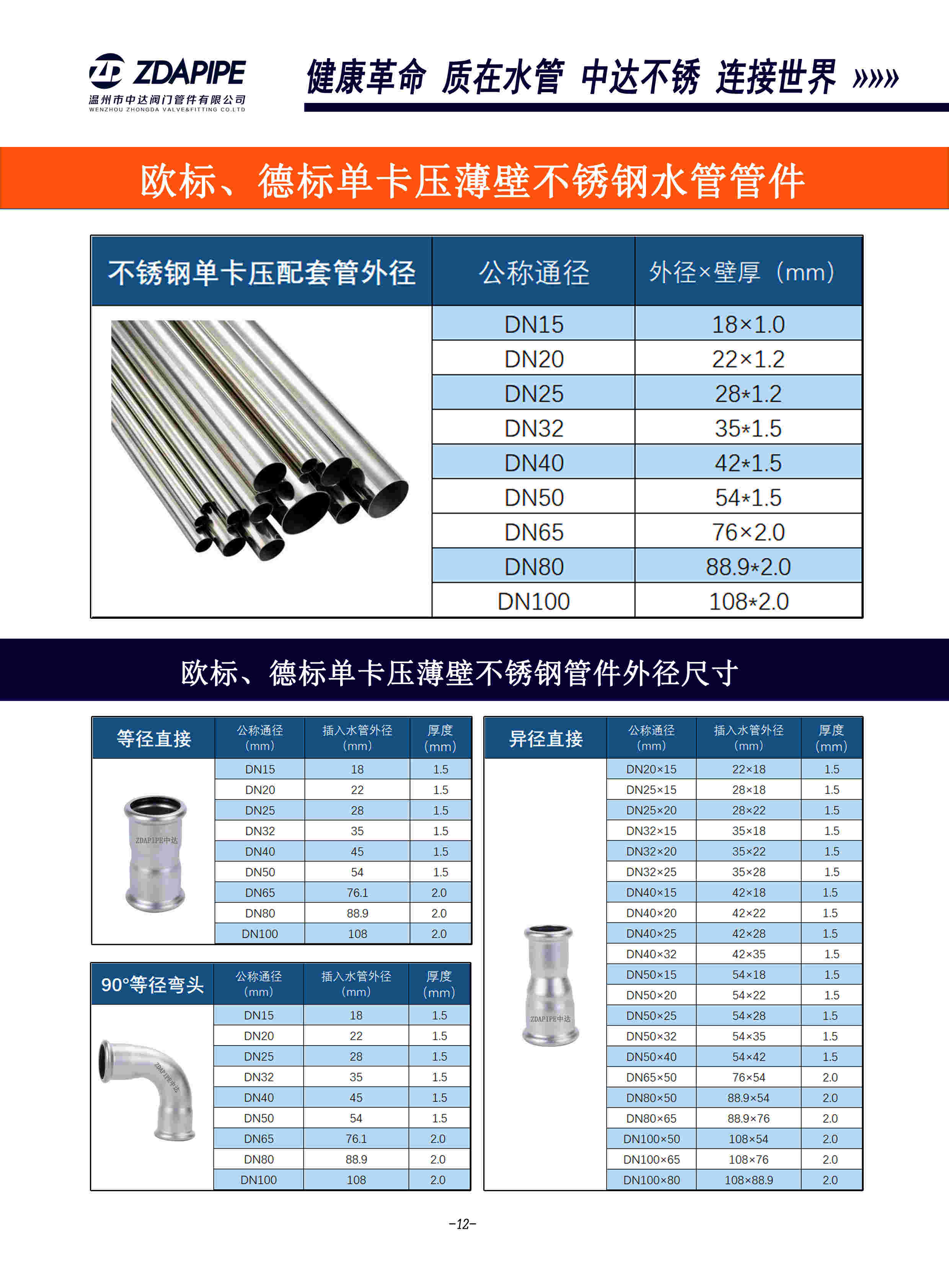 卡壓式管件廣泛應(yīng)用于市政自來(lái)水管道工程,新建小區(qū)直飲水工程,工業(yè)與民用 建筑、賓館、公共建筑、睬氣供應(yīng)等分供水系統(tǒng)。給水,排水,二次供水,太陽(yáng)能,水務(wù)工程,自來(lái)水公司,醫(yī)院,學(xué)校,酒店,賓館,天然氣工程,自來(lái)水工程,直飲水工程,家裝水管工程,工業(yè)管道工程,水處理工程,清潔能源工程,綠色能源,核電等領(lǐng)域。健康革命,質(zhì)在水管,中達(dá)不銹,連接世界。